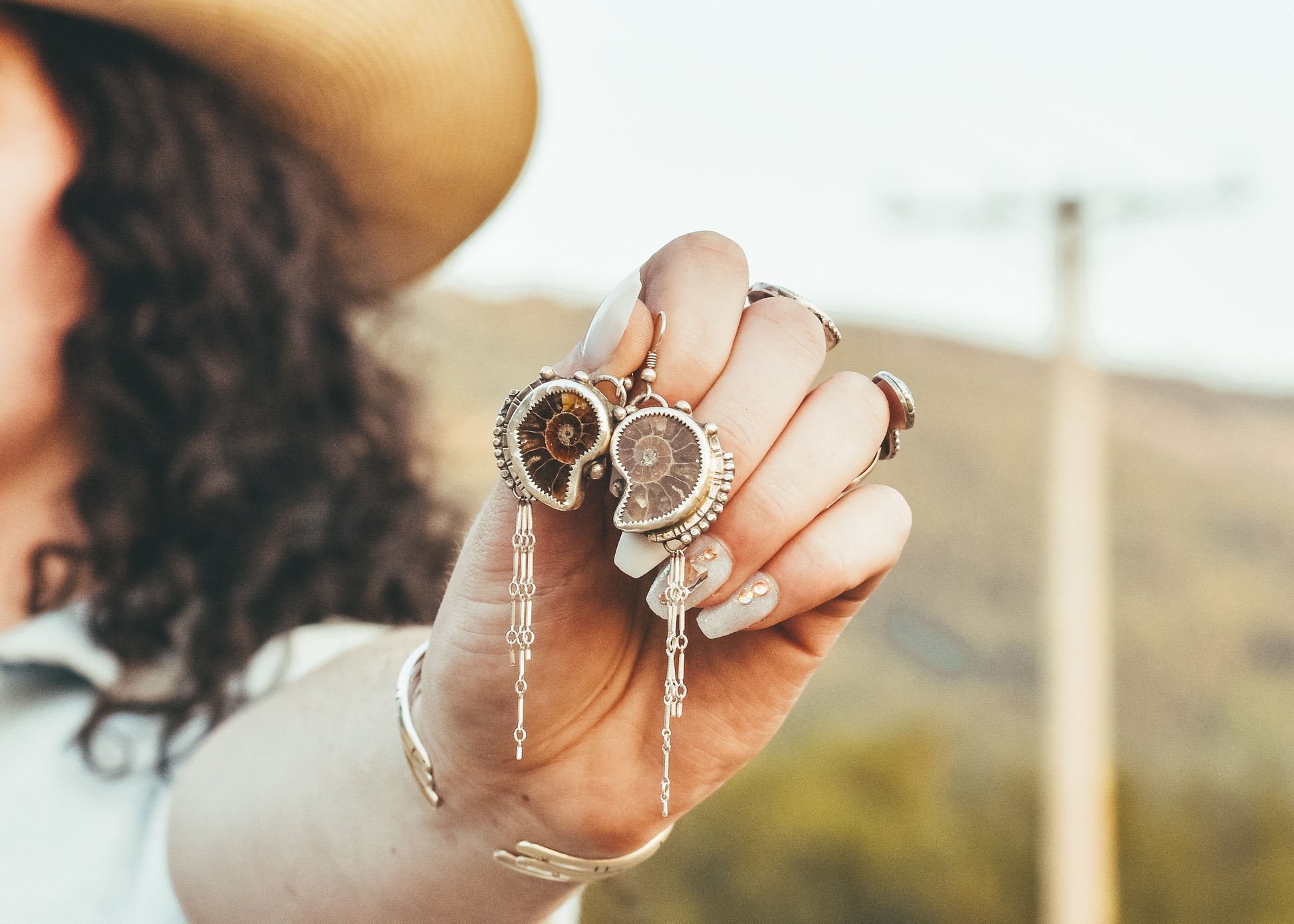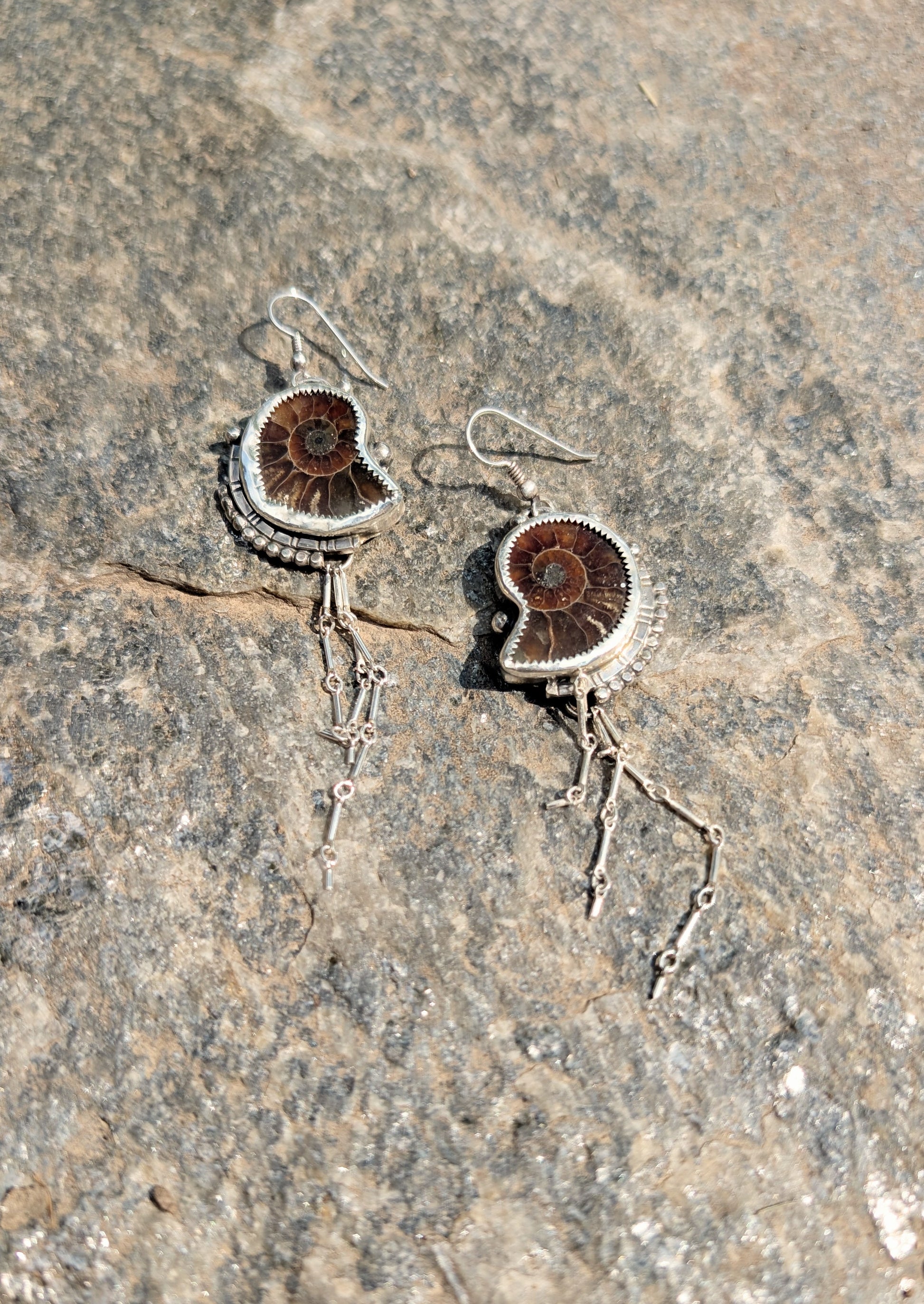 Ammonite shells ... Cut and polished by my grandpa in Montana, with boho accents and unique chain dangles, on French ear wire findings, with "beach please" stamped on the back for a bit of sass! ;)